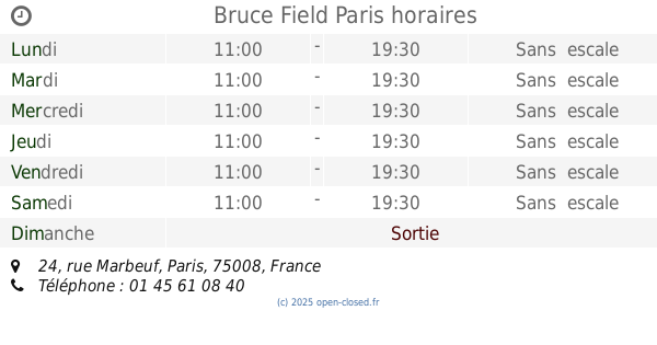 It is also possible to : Modifier ces HEURES D'OUVERTURE of Store Bruce Field Dans Paris, 24, rue Marbeuf,